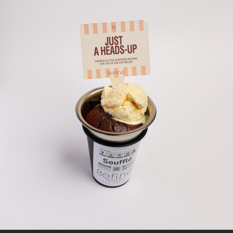 كيك سوفليه طازج يخبز عند الطلب . هش من الداخل (مناسب للنباتيون)